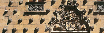 Es la más antigua de España por fecha de fundación, a cmienzos del s. XIII. El edificio actual presenta una fachada plateresca, tallada en piedra como si de orfebrería se tratase, con el busto de los Reyes Católicos y el escudo imperial de Carlos V. |